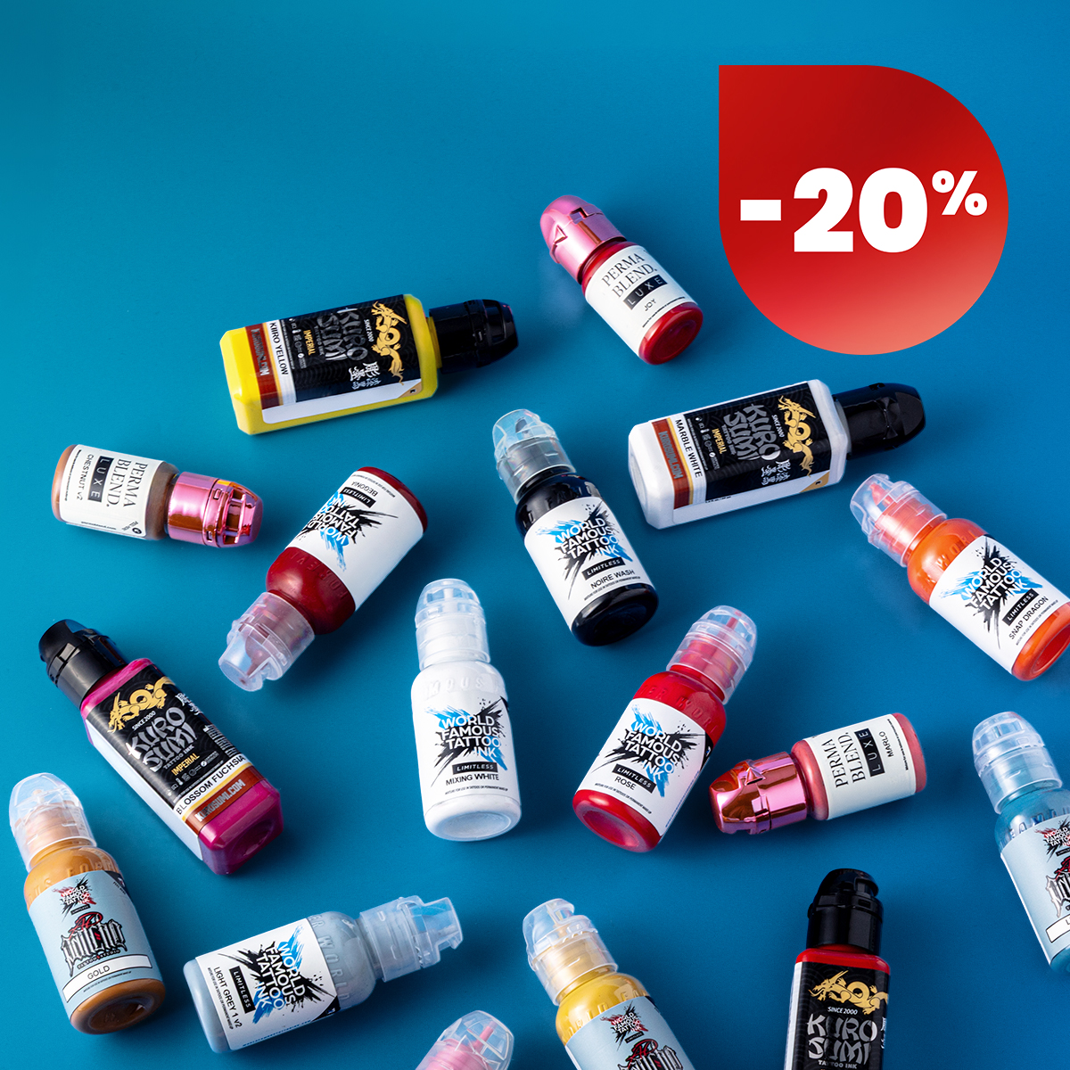 Profiteer van van 20% korting op het wereldberoemde Limitless & Kuro Sumi Imperial tattoo-inkt. Deze inkten zijn perfect voor alle tattoo-stijlen, van fijne lijnen, realisme en traditioneel tot gedurfd neo-traditioneel werk. Ze vormen een onmisbare aanvulling op je tattoo-uitrusting!