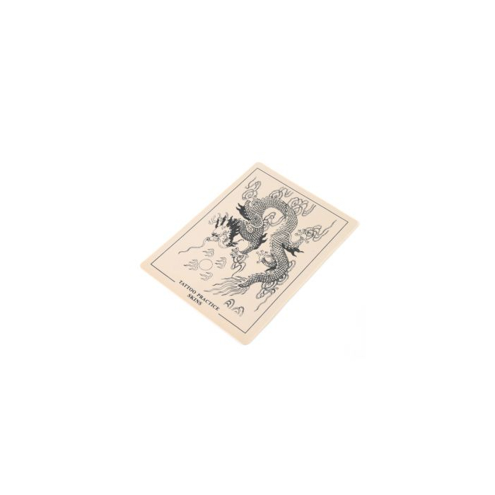 Dit vlakke vel tattoo-oefenhuid is perfect om uw tattoo-ontwerpen onder de knie te krijgen voordat u ze op echte huid probeert. Dit vel bevat drakenontwerpen. De huid is ongeveer 21cm x 15cm.