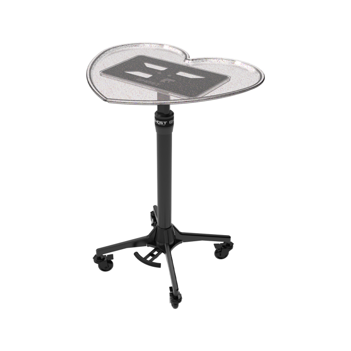 De traybasis van Ghost is voorzien van voetpedaalbediening, de eerste in de branche, waarmee je de hoogte van je lade kunt aanpassen van 24 - 36" (ca. 61 - 91 cm) zonder kruisbesmetting.