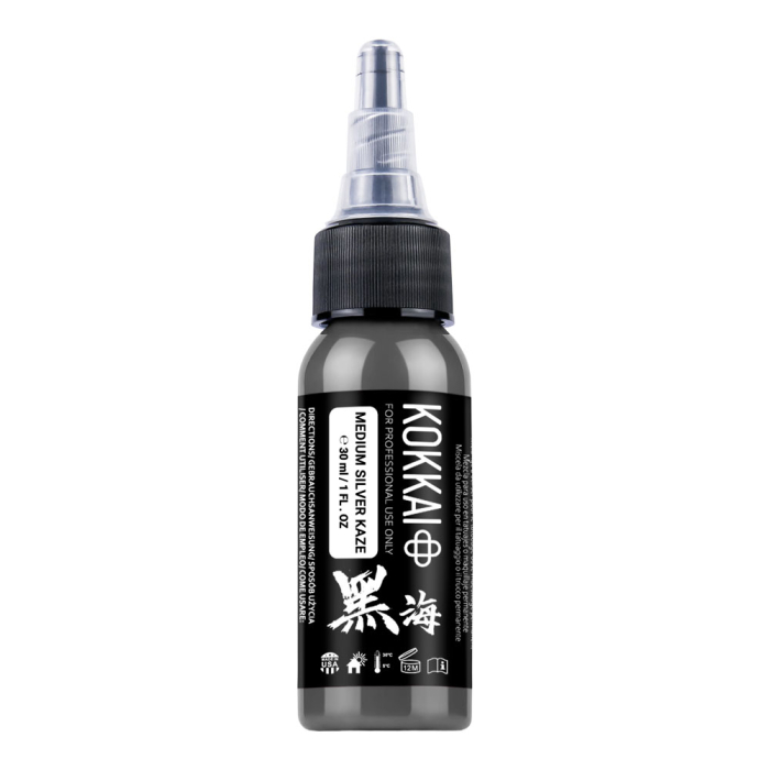 Build balanced depth with Kokkai Sumi Ink in Medium Silver Kaze, a versatile mid-tone grey ideal for soft shading, gradients, and tonal work. This shade is ideal for creating smooth transitions in black and grey tattoos.