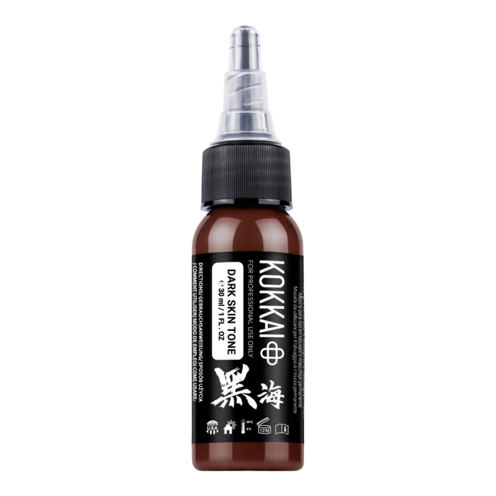 Build lifelike skin tones with Kokkai Sumi Ink in Dark Skintone, part of a 5-shade set designed for portraits, realism, and covering existing tattoos. Offering smooth coverage, balanced undertones, and natural-looking results, it's perfect for layering highlights, mids, and undertones.