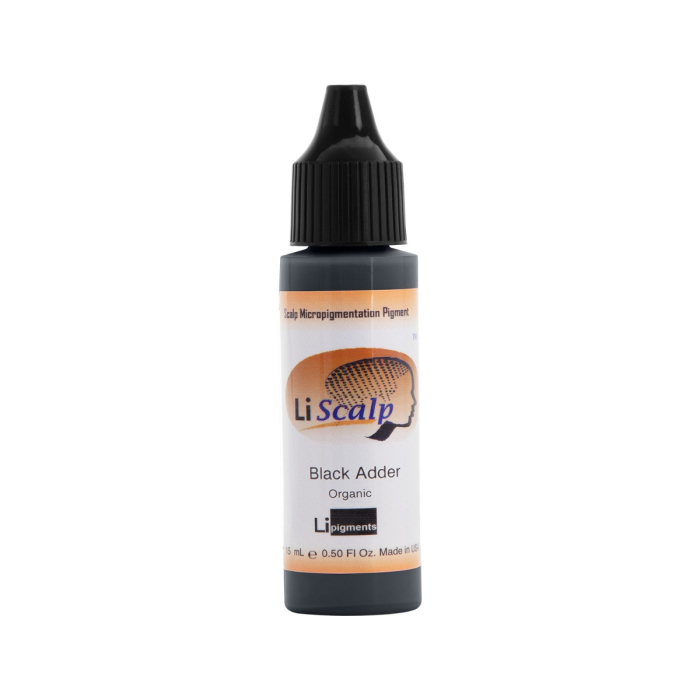 Li Pigments Black Adder is de diepste donkere zwarte kleur in het Li Scalp Organic-assortiment. Alleen als additief gebruiken. Alleen aanbevolen voor gebruik door ervaren technici omdat het een carbon black-pigment is.