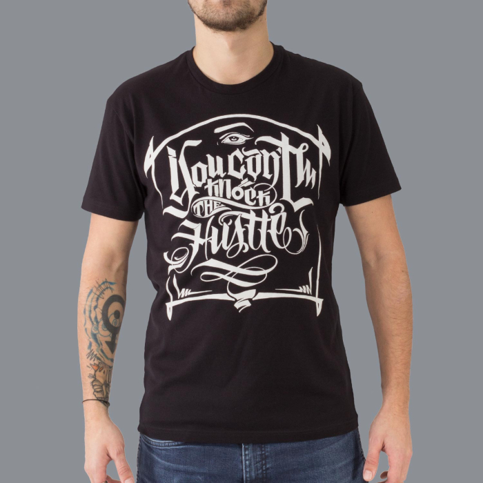 Luxe Hustle Wear T-Shirt in zwart. 'Cant Knock The Hustle' ontwerp van El Whyner.