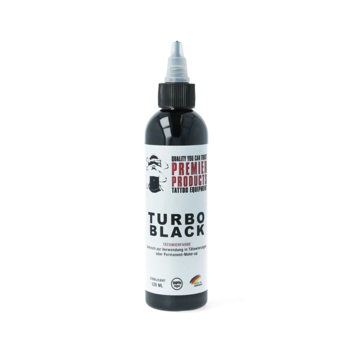 Turbo Black is de donkerste zwarte tattoo-inkt die wordt aangeboden door Premier Products. Makkelijk te gebruiken en zorgt ervoor dat genezen werk zwart en vet blijft.