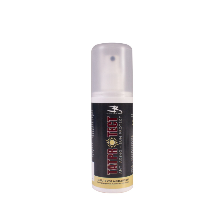 TATProtect Anti-Aging en Sun Protect met SPF 30 beschermt uw tattoos tegen vervalen en van vroegtijdig veroudering van de huid. Waterbestendig, het zal tegen schadelijke UVA- en UVB-stralingen beschermingen terwijl het de huid zacht en hydrateert. De vitamine E in de formule zorgt voor de huidweerstand, verhoogt het metabolisme en vermindert de vroegtijdige veroudering van de huid door middel van vrije radicalen. TATProtect Anti-Aging en Sun Protect's verkoelende formule is verfrissend licht en wordt onmiddellijk in de huid geabsorbeerd.